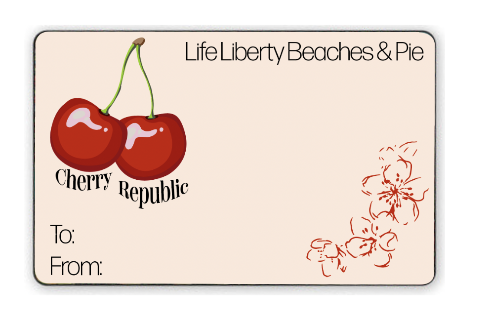 I chose a serif and sans serif typeface. The serif for the “Cherry Republic” Branding and the sans serif for their slogan “Life Liberty Beaches, & Pie”.