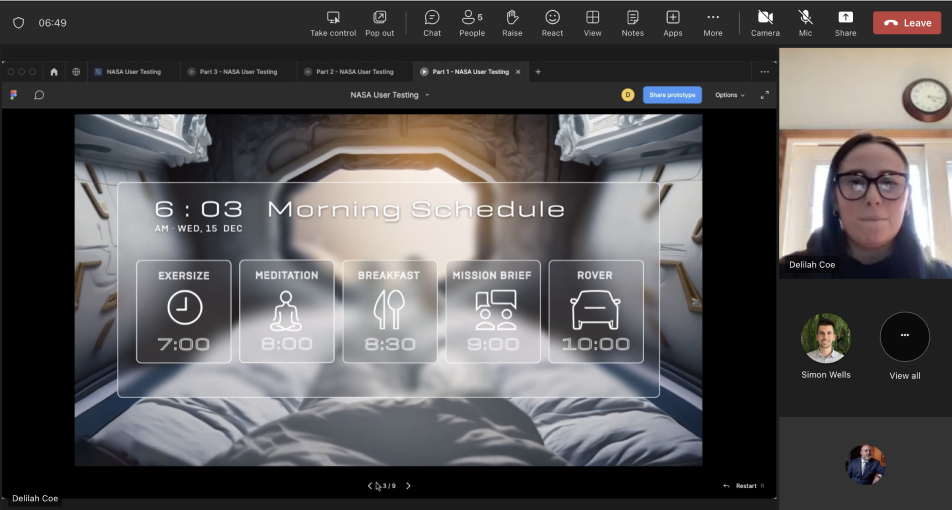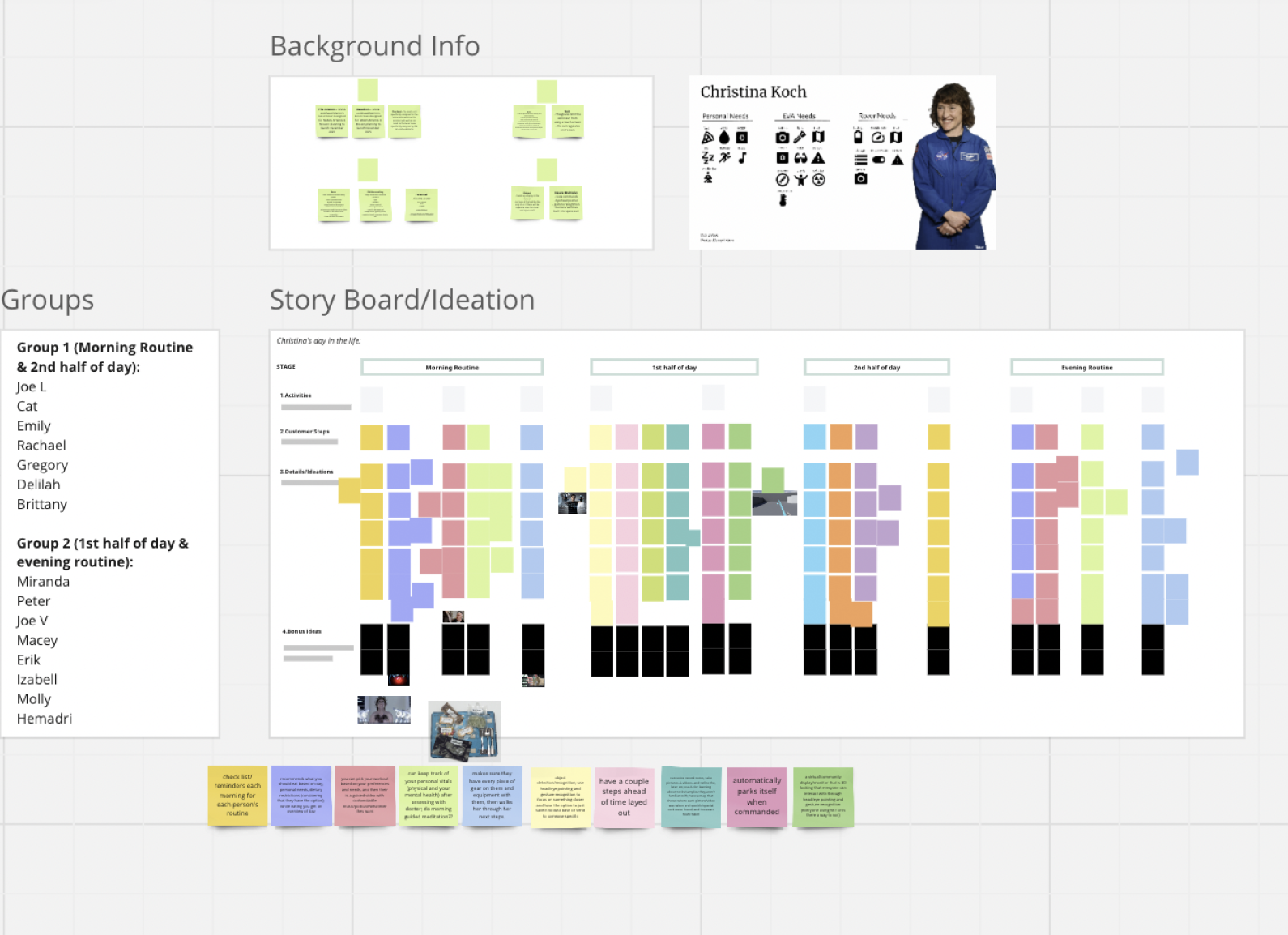 I created a “Day in the Life” based on Christina Koch (Artemis 3 Mission Specialist) to be able to use for ideation